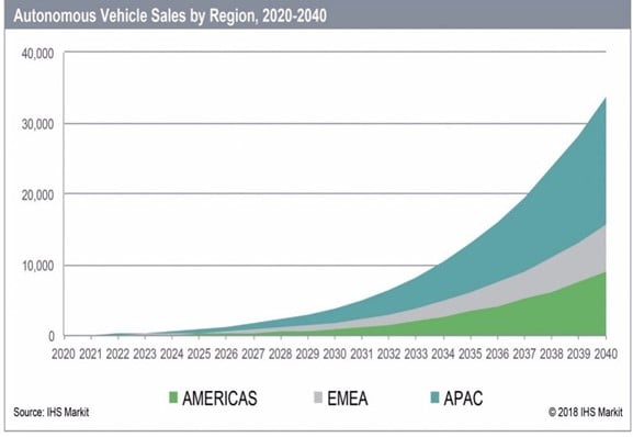 The process should kick off in 2021. That will be a banner year because individual buyers like you and me will be able to buy an automated vehicle, making it the first year of measurable AV sales. IHS Markit predicts 51,000 AVs will be bought that year.